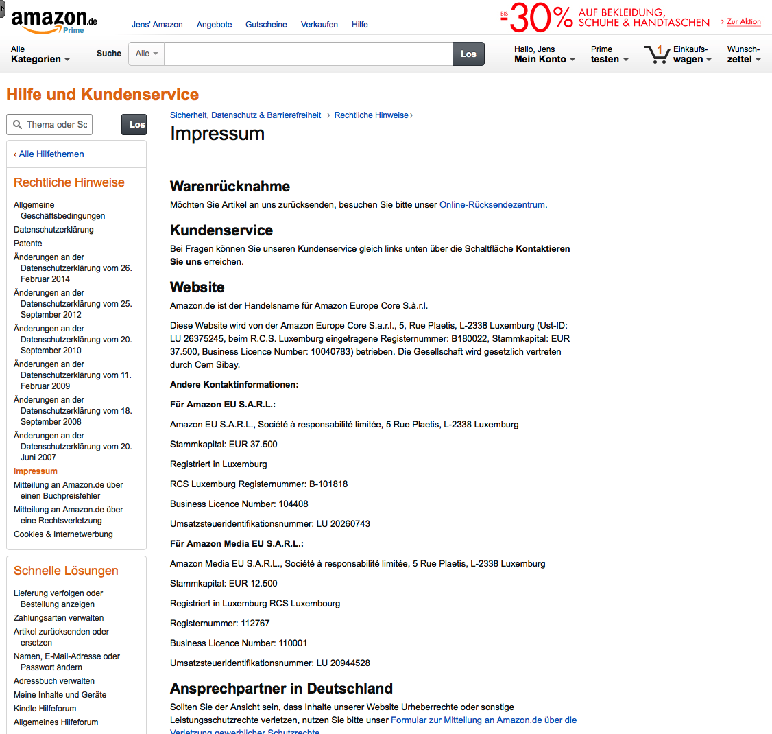 Im Impressum von amazon.de steht jede Menge Text – das wirkt mehr nach Pflichtübung als nach Hilfestellung. Die finden Nutzer anderswo.