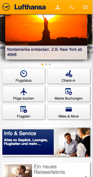 Die Mobil-Version von Lufthansa sieht ganz anders aus: Die Fluglinie setzt auf eine eigene Site statt auf responsives Design.